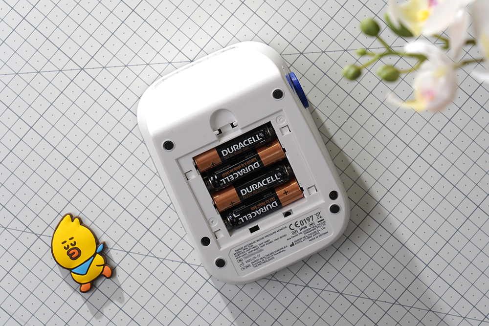 그리고 4개의 AA 사이즈 듀라셀 건전지도 기본으로 제공됩니다. 건전지가 포함되어 있다는 점에서 확인할 수 있듯이 휴대용으로 디자인되었기 때문에 언제 어디서나 혈압 측정이 가능합니다.