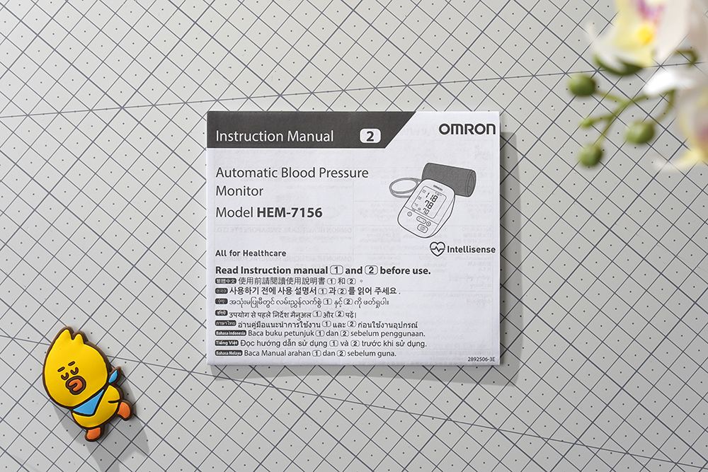 오므론 HEM-7156 가정용 혈압계의 구성품을 살펴보면 사용 설명서가 한 정 포함되어 있습니다. 사용 방법이 어려운 제품은 아니지만 한 번 정도는 자세하게 읽어 보는 것을 추천합니다.